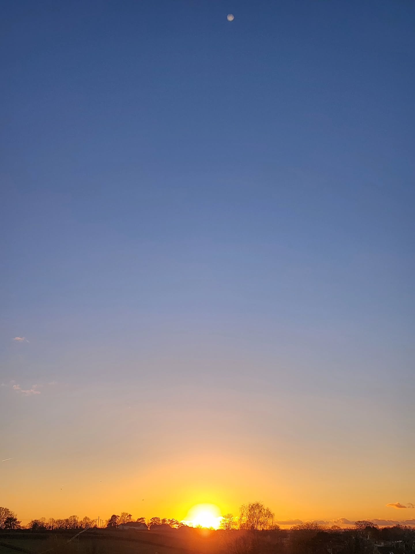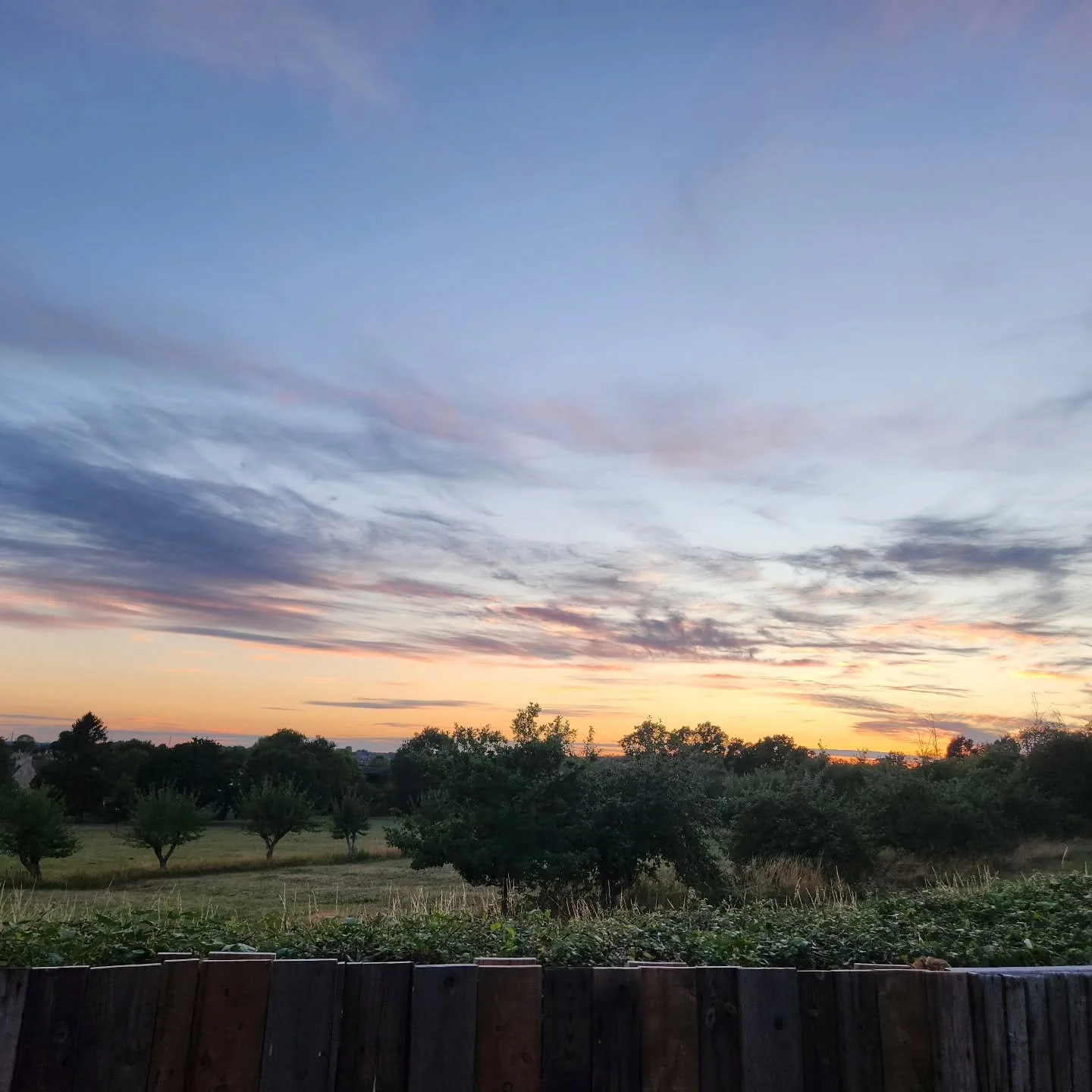 Sunset over a field with tall grasses in the foreground reaching up towards the glowing sun on the horizon.